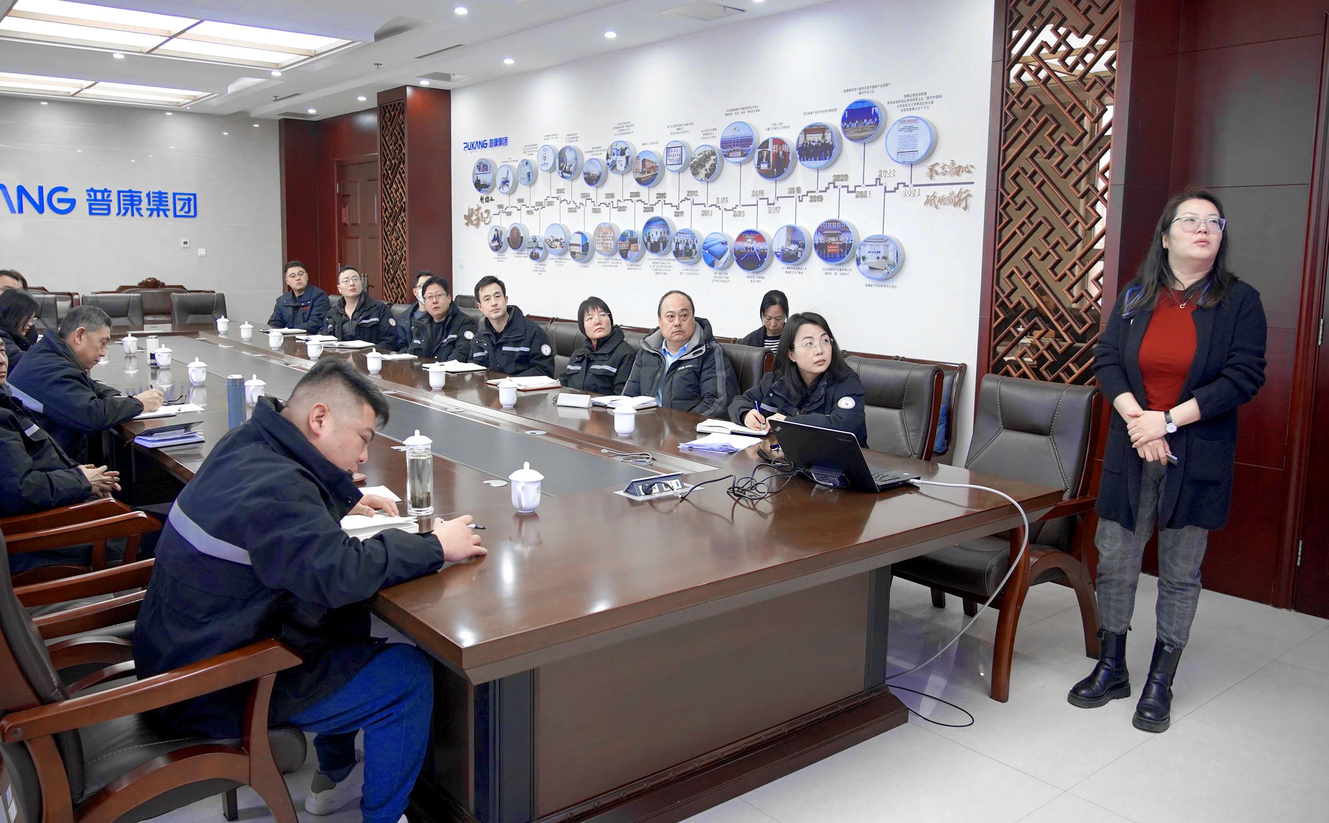普康醫(yī)療總經(jīng)理柏乾、營銷調(diào)控中心總經(jīng)理柏佳莉、各部門負(fù)責(zé)人等出席會議。